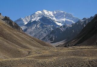 Pico de América del Sur, en Argentina, que corona los Andes meridionales. Flanqueado por otros gigantes de casi su misma talla, constituye, con 6.960,8 m de altitud, el techo de las Américas y una de ...